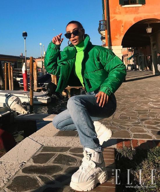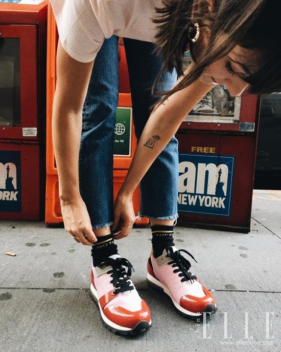 INS上的不少时髦女孩由此受到启发,将这个动作引申到晒鞋中,以霸气的“高抬腿”秀出新鞋,气场无人能及。