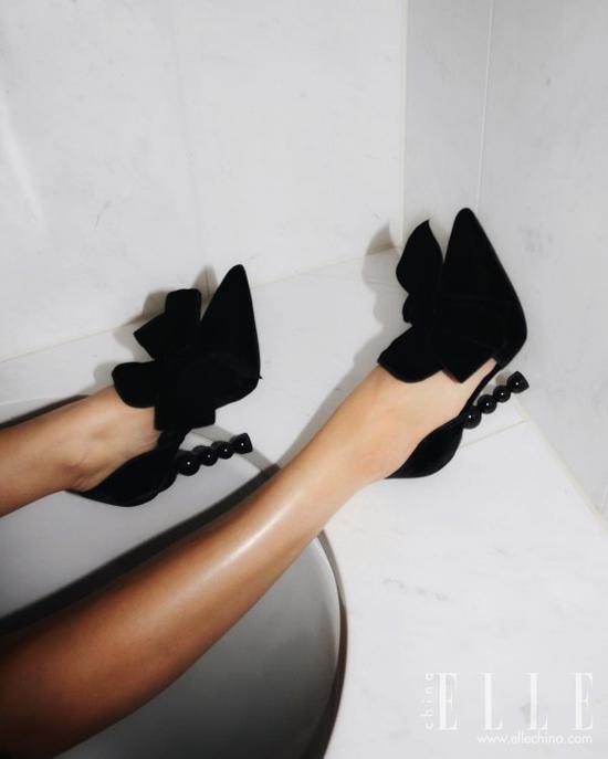 越来越多的设计师将鞋子的设计巧思放在了鞋跟上,那么只能拍到鞋子正面的动作都不再适用。为了保证能露出鞋跟全貌,蹲下拍摄鞋跟特写镜头就成了最好的选择。