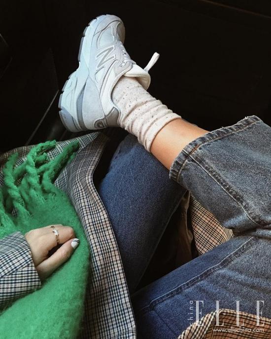 特别是当下风头无两的老爹鞋,厚实却有设计感的鞋底很难从其他角度完全展现,所以这种方式就很适合晒这种类型的鞋子。