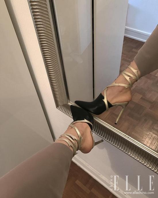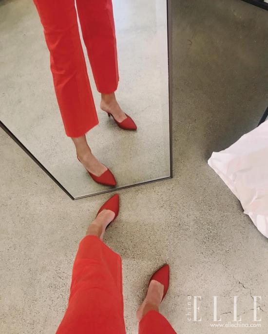 不要对着镜子拍全身照了,鞋子很难成为第一眼焦点。如果一定要对着镜子拍,不如贴着镜子只拍下半身,并通过镜面打造出鞋子的“二重身”效果,让人记忆更加深刻。